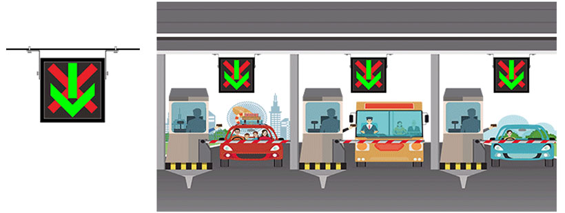 El indicador de carril con flecha verde y cruz roja es un tipo de señal de tráfico común en autopistas, especialmente en peajes y túneles. Como equipo esencial de seguridad vial, funciona como luz de freno para controlar el carril y garantizar la fluidez del tráfico. Este dispositivo se puede clasificar en indicadores de carril, señales de peaje y señales de túnel. Su pantalla consta de una cruz roja y una flecha verde: cuando la luz de flecha verde está encendida, indica que los vehículos pueden avanzar. Cuando la luz de la cruz roja está encendida, indica que los vehículos deben detenerse y no entrar en el carril.