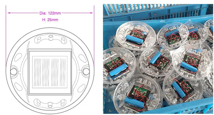 The cats eye solar led road studs are composed of reflective materials, die-cast aluminum or plastic shells, solar panels, LEDs, energy storage batteries, and control devices. It combines active luminescence and passive reflection to be road markers. The number of led chips is optional for different quantities. It is the most mainstream solar road stud solution currently on the market, is used for deck, highway, crosswalk, lanes by engineering companies, wholesalers, and retailers.