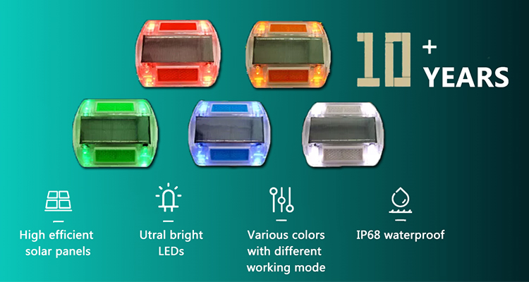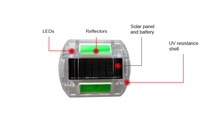 The cats eye solar led road studs are composed of reflective materials, die-cast aluminum or plastic shells, solar panels, LEDs, energy storage batteries, and control devices. It combines active luminescence and passive reflection to be road markers. The number of led chips is optional for different quantities. It is the most mainstream solar road stud solution currently on the market, is used for deck, highway, crosswalk, lanes by engineering companies, wholesalers, and retailers.