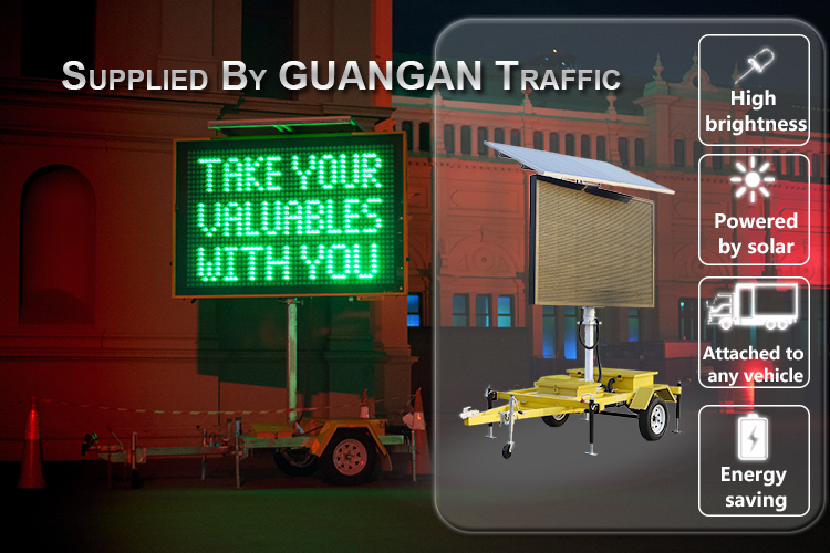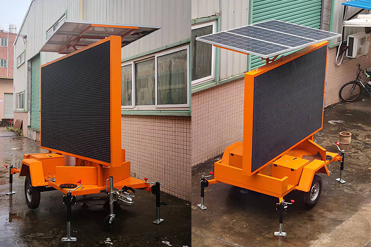 VMS trailer are warning drivers safely and reliably. Portable VMS Solar powered sign trailer with bright and effective five-color LED messaging. The product uses the latest LED technology to show text, graphics, and animations.